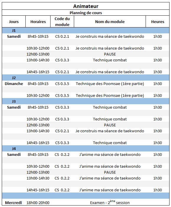 • MS Animateur Taekwondo – Adeps