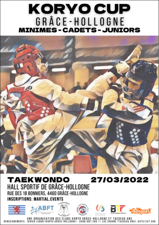 Les inscriptions sont ouvertes sur le site Martial.Events : https://www.martial.events/fr/events/koryo-cup-grace-hollogne-2022