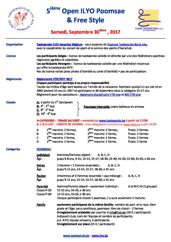 Information Open ILYO Poomsae 2017