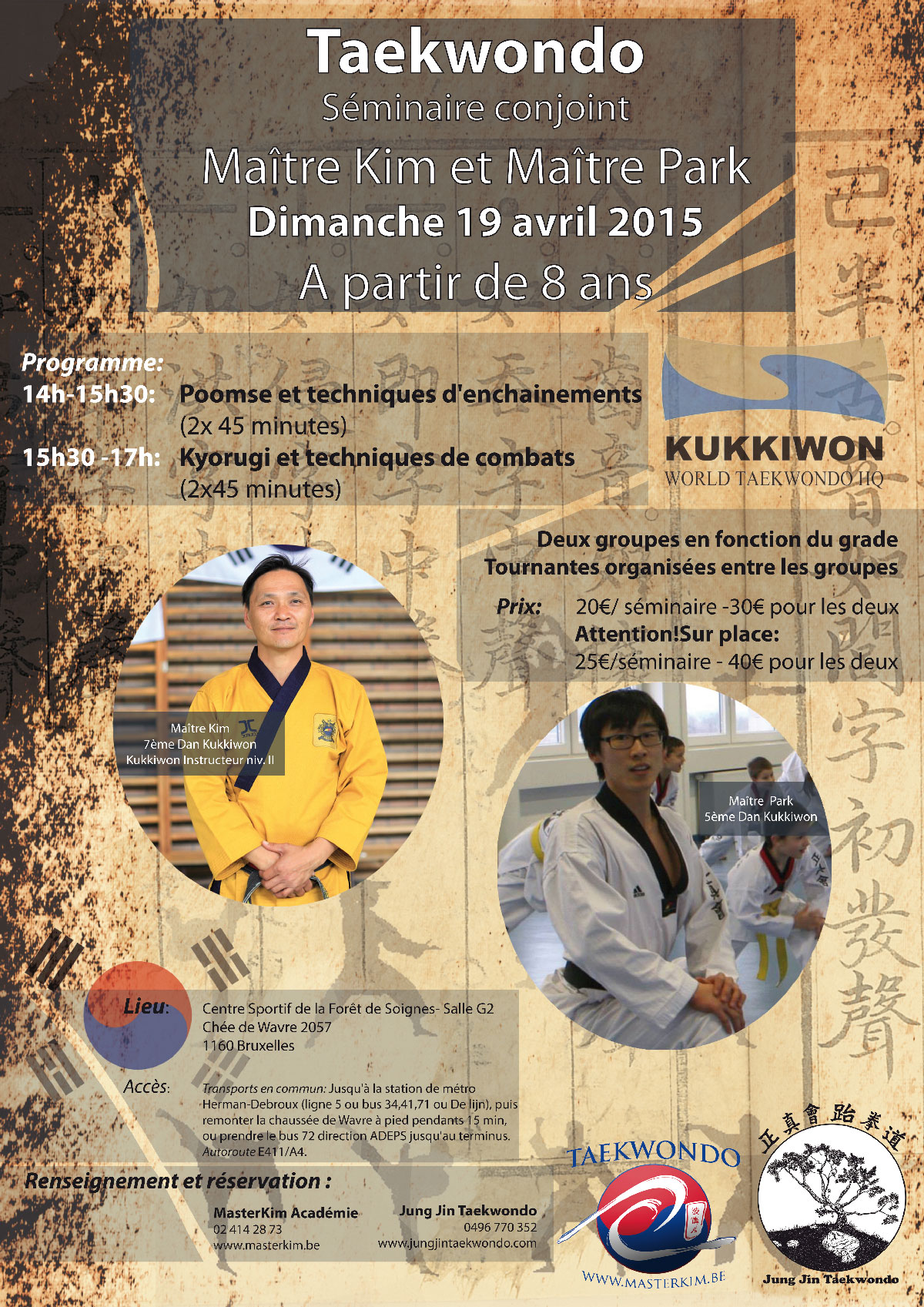 Le club Master Kim et le club Jung Jin Taekwondo organisent conjointement un séminaire de taekwondo ce dimanche 19 avril 2015 accessible à tous à partir de 8 ans.