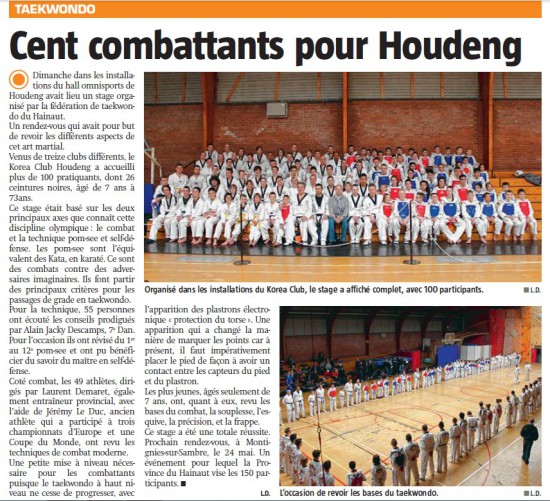 13 clubs présents: Chassan Academy, Taekwondo Wolf, Club Héron, Taekwondo Lee Profondeville, Tkd LS team Belgium, Duit Chagui Club, T.K.D Experience, Fasung Tournai, TKD Namur, To san AJD Jurbise, Korea club Houdeng, Tollyo Academy et Palgwe Mons.