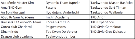 Liste des clubs participants