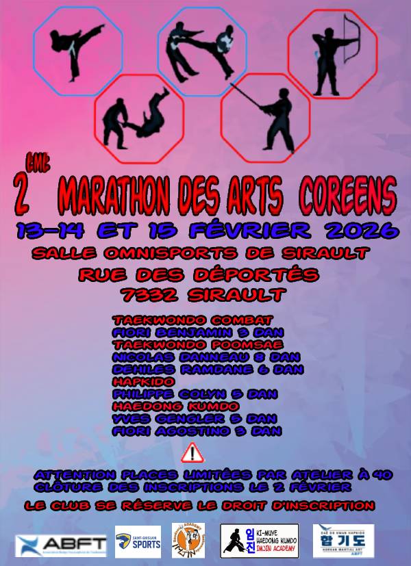 Le 2e Marathon des Arts coréens aura lieu les 13, 14 et 15 février 2026 dans la salle omnisports de Sirault…