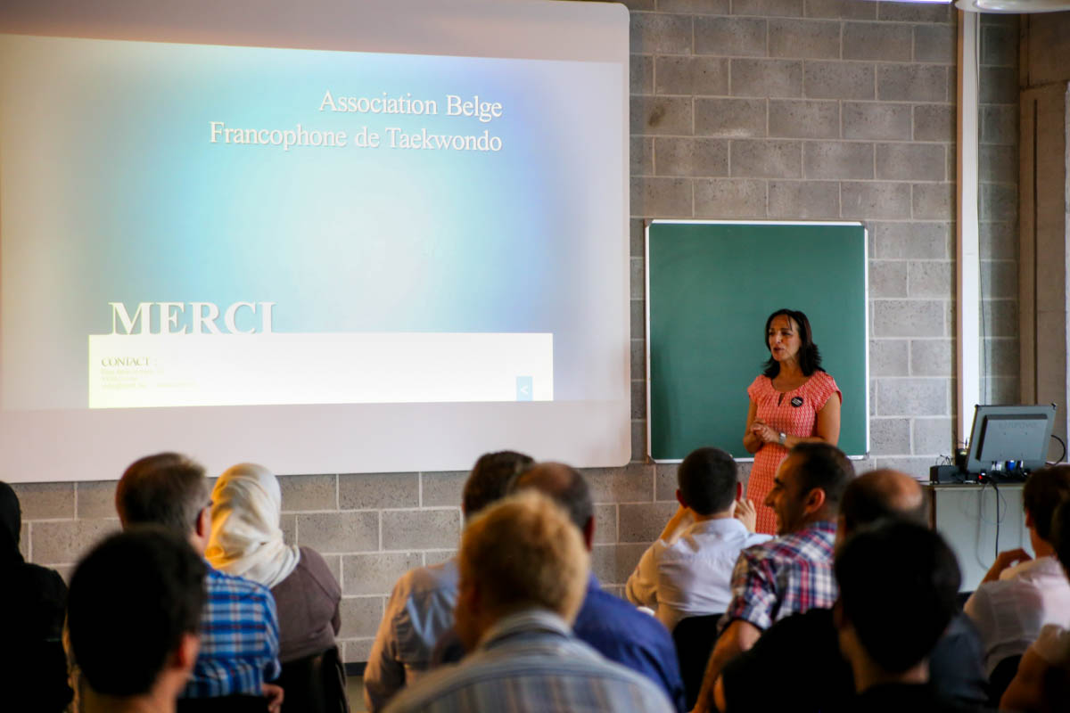 Abdelhak Boubouh, Président de l’ABFT, a remercié chaleureusement l’ensemble des officiels présents de l’ADEPS, du projet Be Gold, de l’ULB, de l’Ambassade de Corée, de l’Institut de la Vierge fidèle de Schaerbeek, de la presse, … La Ministre, Fadila Laanan, qui a en charge le sport à Bruxelles nous a fait l’honneur de sa présence.